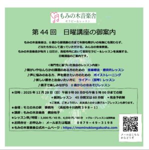 もみの木音楽舎が、月に1日だけ、高松市内で出張セラピー&レッスンをいたします。